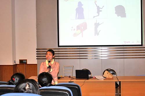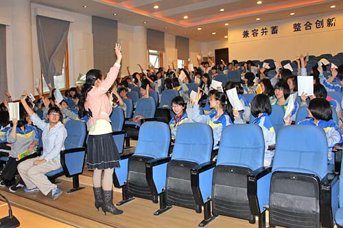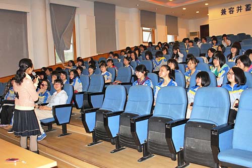 4月19日下午6:40,美視中學部委托校團委書記、心理老師劉敏在學術廳針對高一、高二100多名女生舉辦女性話題講座。劉老師從青少年女性的生理心理特點切入話題,不時插播一些相關的視頻,并以知心姐姐的身份就女性自我保護、戀愛等敏感問題提出了忠告。由于講座內容貼近女生思想實際,觸及了女生的心理煩惱,而情深意切、語重心長的講解又確實解決了許多女生的心結和困惑,有的甚至起到警醒的效果,因此講座持續到晚上9點同學們聽興尤濃。