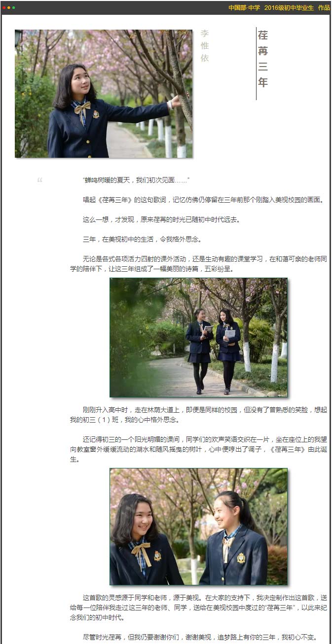 美視中國部·中學初2016級畢業生,