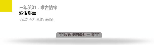 高中,是人生的花季,雨季。我衷心地希望你們在最亮麗的雨季,享受生命之花的絢麗綻放。以后,仍然會有很多很多愛你們的人會陪伴著你們,給你們指引道路。一定要虛心的聽,認真地想。而我,將在這個寂靜的夜晚,給你們上最后一次“課”。