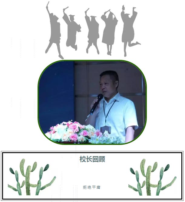 尊敬的中國部校長徐德雄回顧了高2014級三年來的點點滴滴,肯定了師生在三年里的努力和付出,今年優異的高考成績就是最好的佐證。