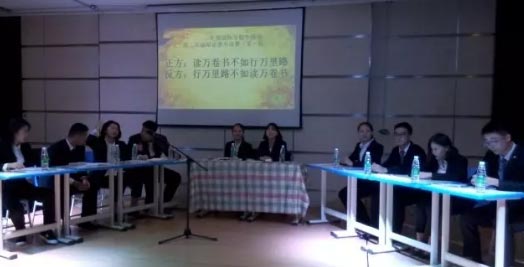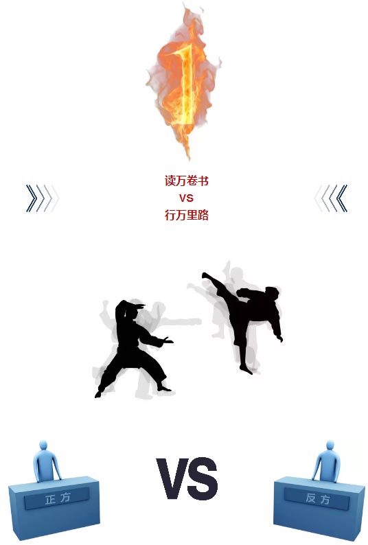 主持人劉奕伶毛琬凌宣布比賽開始后,雙方圍繞“讀萬卷書還是行萬里路哪個更重要”這一辯題展開。
