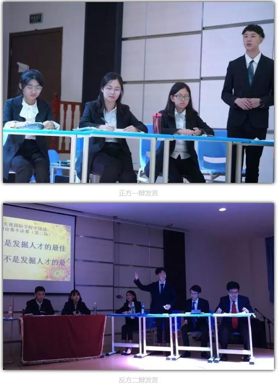 中國部高二年級學生組成的四支辯論隊伍,舉行了兩場半決賽。
