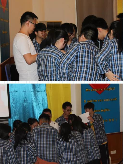 為助力高考,中國部·中學心理教師梁青泉(國家中級拓展培訓師)組織高三年級同學進行了一場“沉著應對”高考的考前拓展培訓。