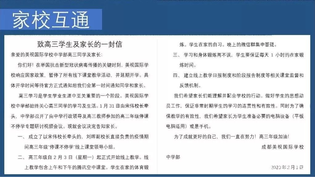 在這個抗擊冠狀病毒的特殊時期,中學部全體教師堅持停課不停學,積極開展各項工作應對推遲開學帶來的問題。讓我們攜手抗擊新肺炎,攜手為學生提供優質教育服務。
