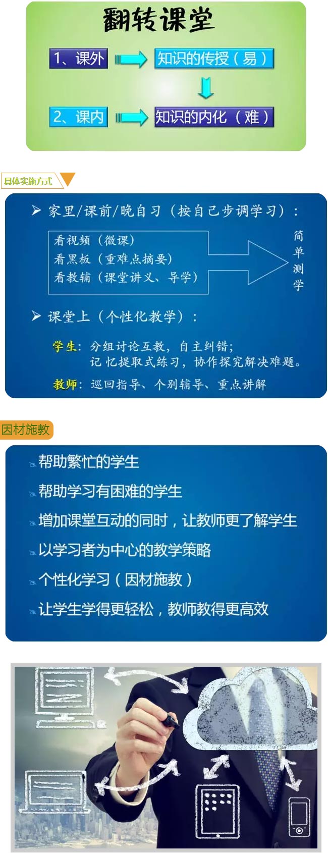 翻轉課堂將學生”自學“放在課堂教學之前,善用互聯網,以更理想的學習者狀態導入因材施教的課堂教學當中,從而獲得極佳的教學效果。