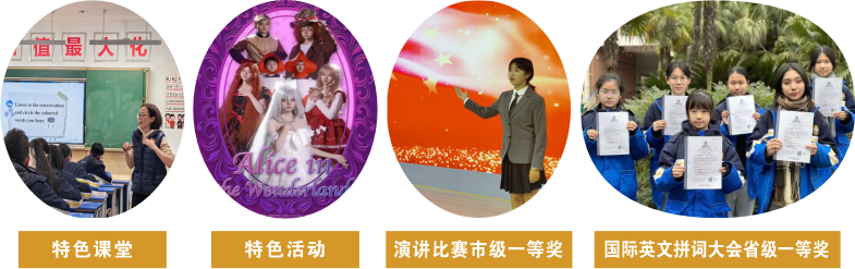 英語教學既重視基本知識,又重視口語、聽力訓練,開設英語閱讀課,每年四月舉行全校“英語活動周”。學校大力強化英語教學,增加周課時,增強教師力量。第二課堂開展英語表演、英語演講、英語辯論、英文電影賞析等活動。