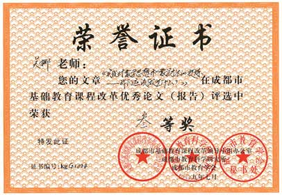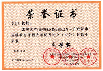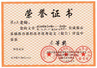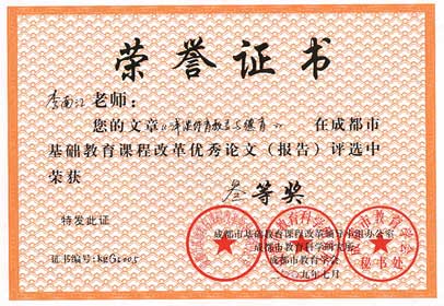 成都市基礎教育課程改革優秀論文評選獲獎名單