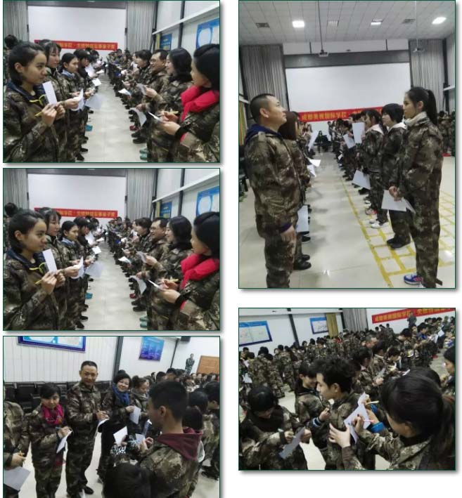 夜幕下,冷空氣包圍了我們100余人,但是大家都振奮精神,聽教官介紹、訓話,領取訓練服。第一次和孩子一起參加這樣的活動,相信其他家長和我一樣,心里都充滿著好奇和興奮。