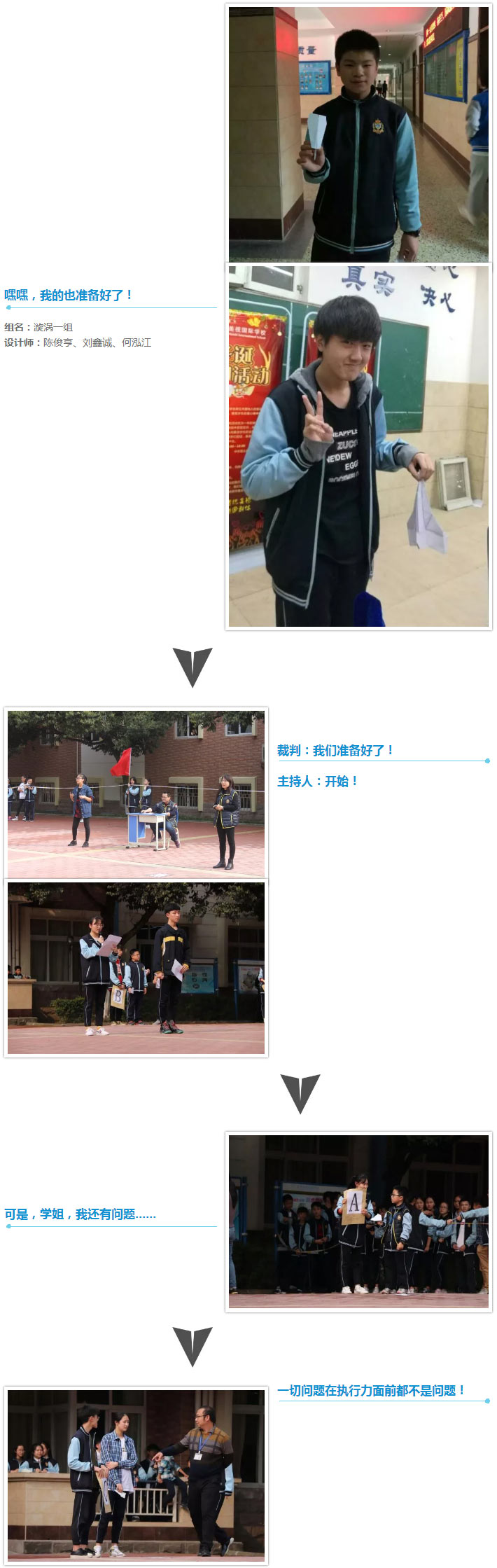 演練場上,學生會對整個比賽活動的關鍵環節做了精心的演習,理綜組老師也借此展示了風向、空氣密度、飛機的起飛角度、飛機結構等要素對飛行軌跡的影響,為學生參賽的熱情再添一把科學之火。