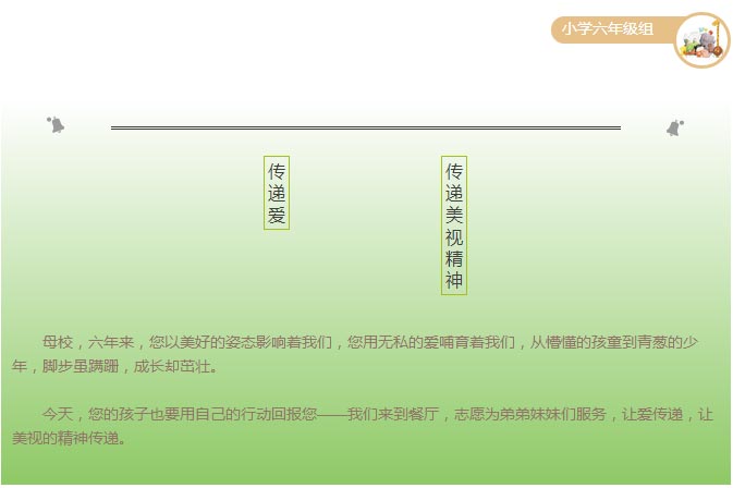 親愛的母校,您哺育了我們六年,我們在您的懷抱中漸漸長大,