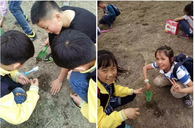 是親近泥土的季節,更是種下希望的季節。吃完午飯,六哥帶我們去一片田地種豆子。我和飛兒兩人一組,拿起六哥發給我們的鏟子,嗅著泥土的芬芳,興奮地開挖起來。我們挖了一個杯口那么大的小坑,把兩顆黃豆輕輕放了進去,再埋上泥土。