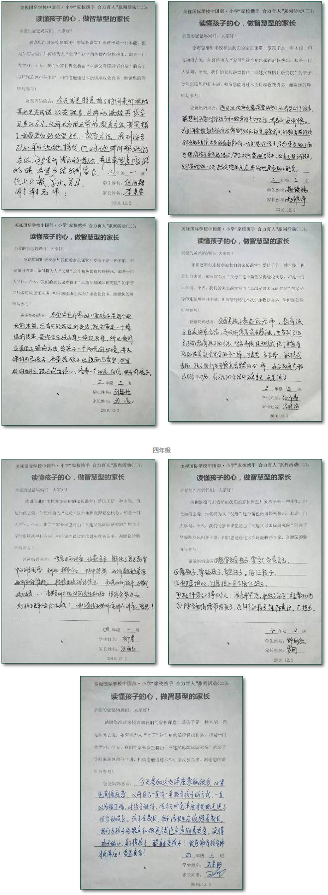 2016年12月2日下午,國家注冊心理咨詢師、愛自然生命力家庭教育親子導師張迎鳳女士以“讀懂孩子的心,做智慧型家長”為主題,與中國部·小學三、四年級的家長分享了自己的教育理念。
