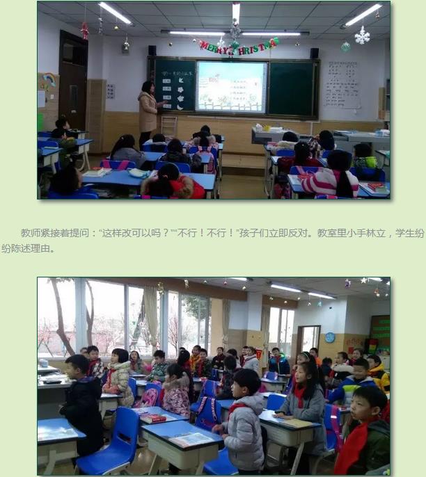 一年級語文課上,龐姣嬌老師把《雪地里的小畫家》中的詩句改成這樣:
