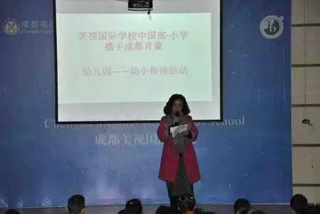 接著,中國部·小學的楊校長熱情洋溢地說:“歡迎孩子們和家長們的到來,我們美視不僅面積大、教育樣式多,而且環境美,學生和老師的心靈更美!聽過的忘記了,看過的記住了,做過的掌握了。我們堅信在有效的活動中引導學生探究學習這才是真理!”家長們致以熱烈的掌聲,連連表示贊同。