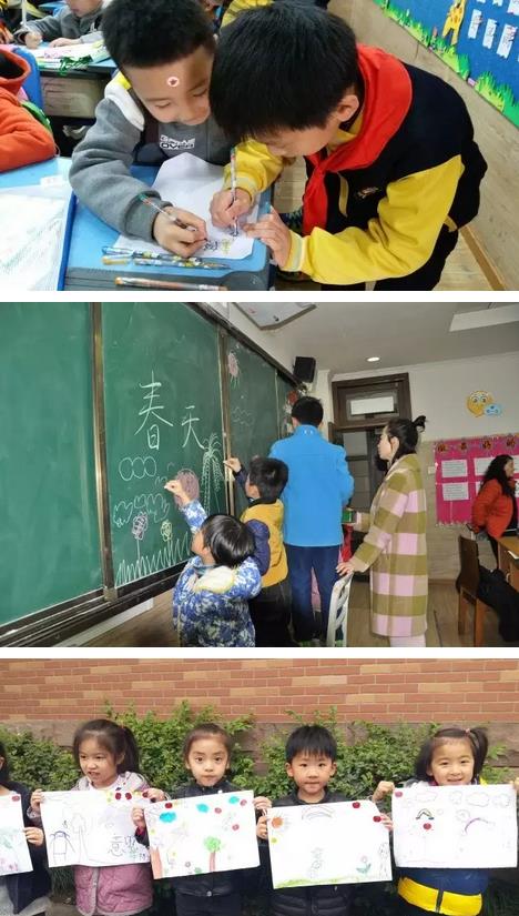 在三年級的教室里,寶貝們正在“夸夸春天、畫畫春天”呢。別看幼兒園的小乖乖那么小,在哥哥姐姐的幫助和帶領下,也像模像樣地“學習和探索”著呢!