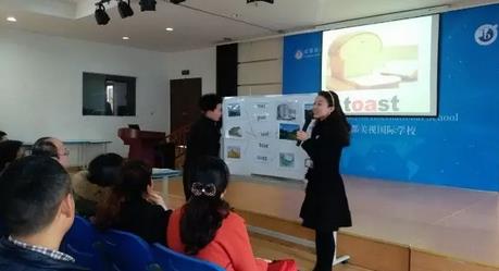 然后,酷爸靚媽們搖身一變,成了“小學生“。易巾晶老師帶著他們走進了活潑、有趣的英語課堂,積極地參與其中,家長們驚喜地發現:原來美視的英語教學這么得富有特色!