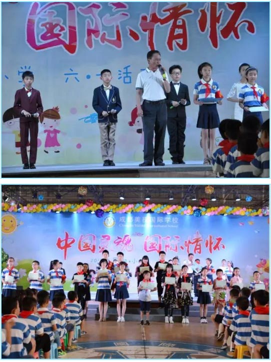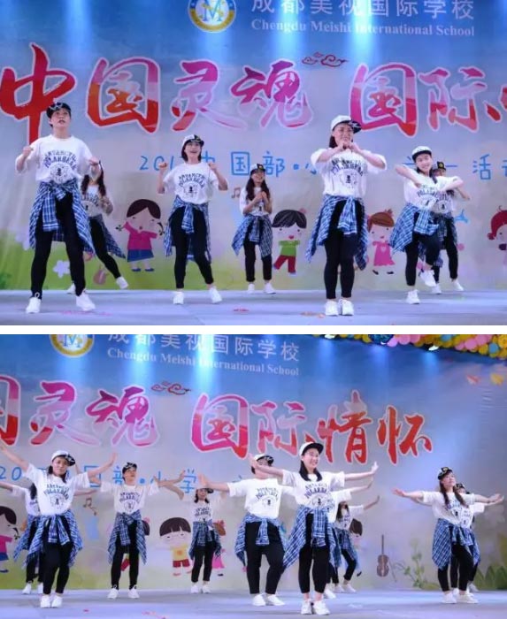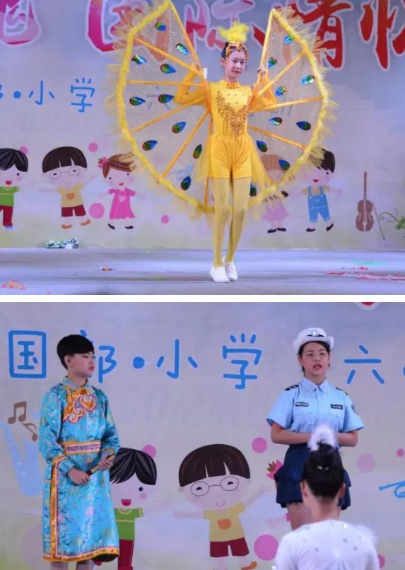 今天,我們?cè)趯儆谖覀兊奈枧_(tái)展示自我。在“中國(guó)靈魂 國(guó)際情懷”主題慶祝活動(dòng)中自信大方地展示自我,我們活潑熱情,我們青春飛揚(yáng)。我們會(huì)繼續(xù)乘著歌聲的翅膀展翅飛翔,在屬于我們的童年綻放最美的笑容。