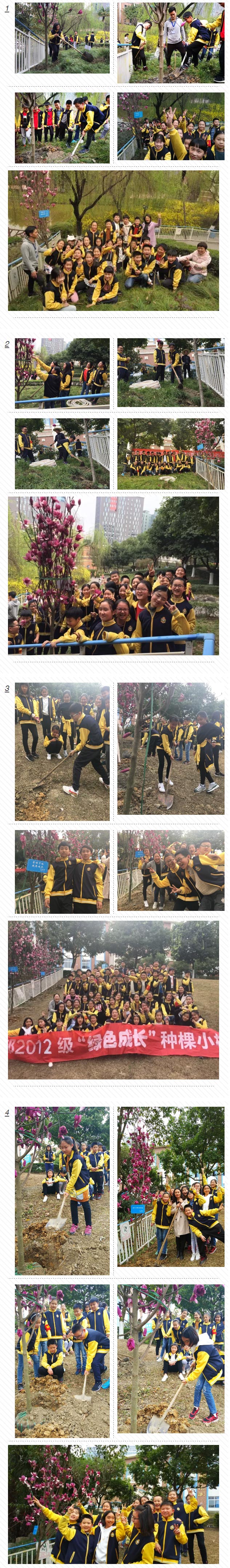 “種下一棵樹,留下一片情!人人都出一份力,每班種下一棵玉蘭樹,為母校增添一抹綠色!我們種下綠色的樹苗,播撒春的氣息,用愛的陽光,使綠樹常青吧!相信在我們共同努力下,我們的校園將更美麗……!”