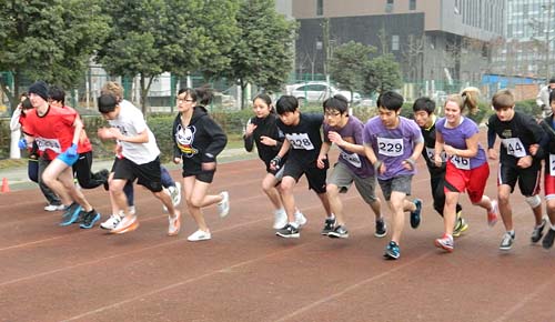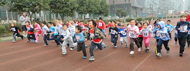 成都國際學校聯盟越野賽于2012年2月28周二在我校舉行。來自成都國際學校聯盟的5所學校以及來自重慶的兩所國際學校的超過220名運動員參賽。本次比賽按六個年齡段分組,賽跑距離從1.3公里到3.5公里不等。雖然天氣很冷,運動員們展示出了杰出的賽跑才能。伴隨著家長、老師以及同學們的陣陣加油聲與喝彩聲,同學們竭盡全力跑完了全程。
