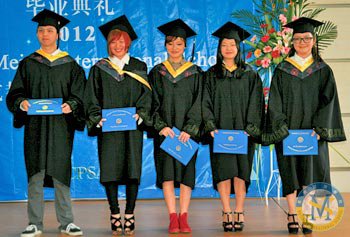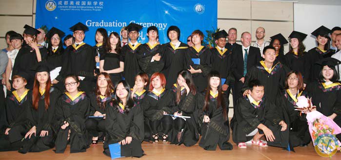 成都美視師一學校國際項目部于2012年6月1日舉辦美視第二屆IB班畢業生畢業典禮。畢業生家長以及全體師生參加了本次畢業典禮。國際項目部校長劉建華先生和行政校長分別致辭,祝賀畢業生們圓滿完成學業。在本次畢業典禮上,大家欣賞了由同學們帶來的舞蹈、歌曲以及樂器演奏。同時,大家觀看了由學生自制的電影短片。大家祝愿畢業生們前程似錦。