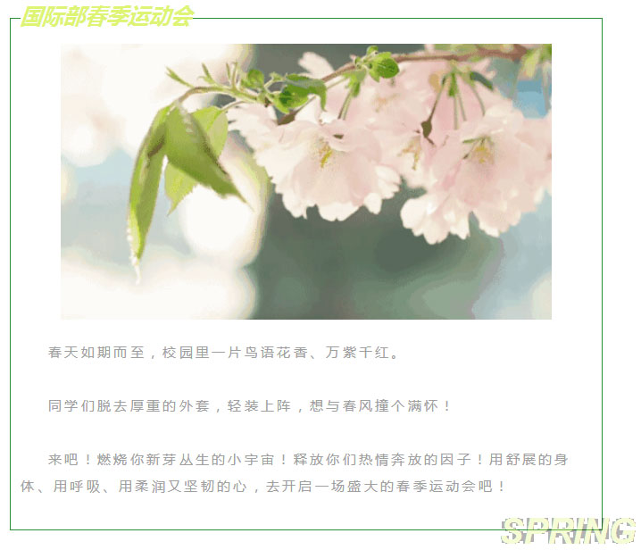 孩子們,讓我們在這個春天,在最好的季節,在運動中積蓄飽滿力量吧!我們秋季再戰!