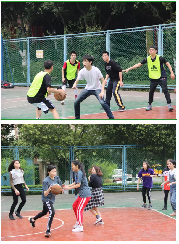 籃球場上,隊員們時而高高躍起,搶球傳球;時而伏下身來,躲過對方襲擊。他們動作連貫、毫不馬虎,對準籃筐,輕輕將球拋出,“kua”,最后球穩穩地落入框中,引來場外叫好一片,好不熱鬧。