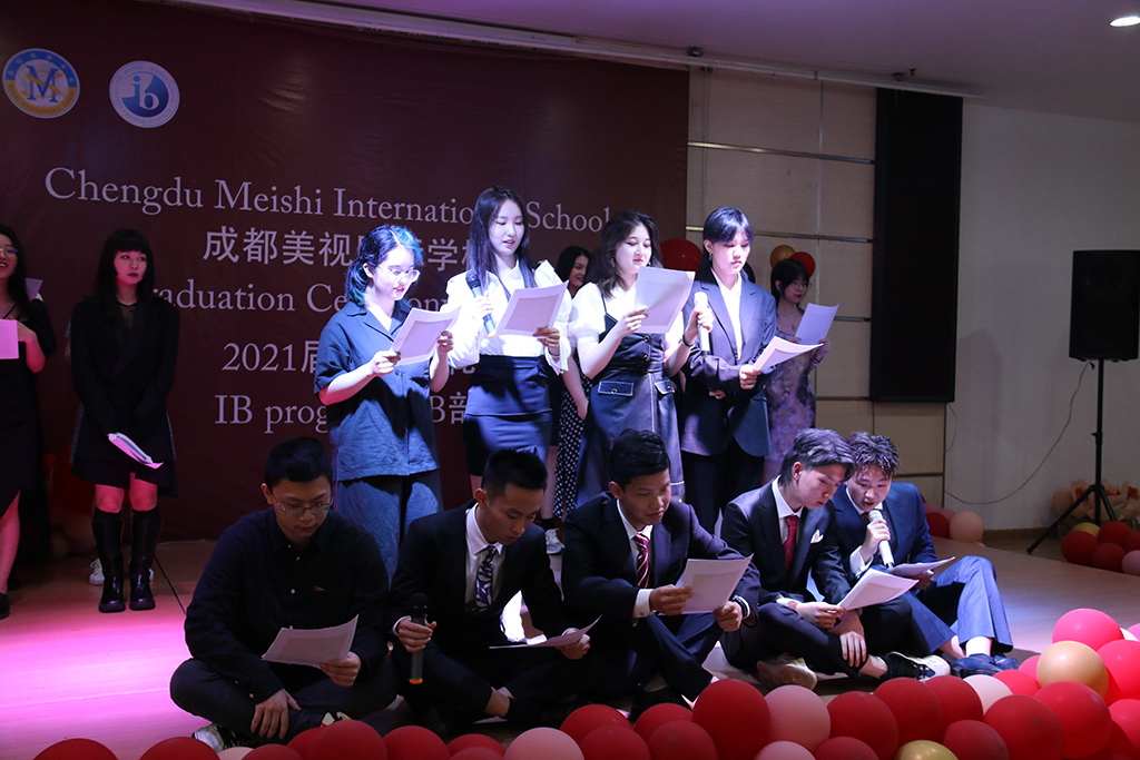 典禮開始,12年級班主任昌老師帶領(lǐng)所有畢業(yè)生入場,接下來IB部劉校長發(fā)言,她回顧了畢業(yè)生的美視學(xué)習(xí)生涯,用不同顏色形容了2021年,是畢業(yè)們戰(zhàn)勝困難取得優(yōu)異成績的金色,是代表畢業(yè)生多元化的彩虹色,是代表師生互相關(guān)懷的炙熱的紅色,是代表思念與祝福的藍(lán)色。劉校長還提出了對畢業(yè)生的囑托,希望大家時刻在人生中準(zhǔn)備好planB,有備無患;堅(jiān)守本心,不忘初心;保持批判性思考,并且永遠(yuǎn)保持做人的善良和正直,剛?cè)岵?jì)面對這個世界。