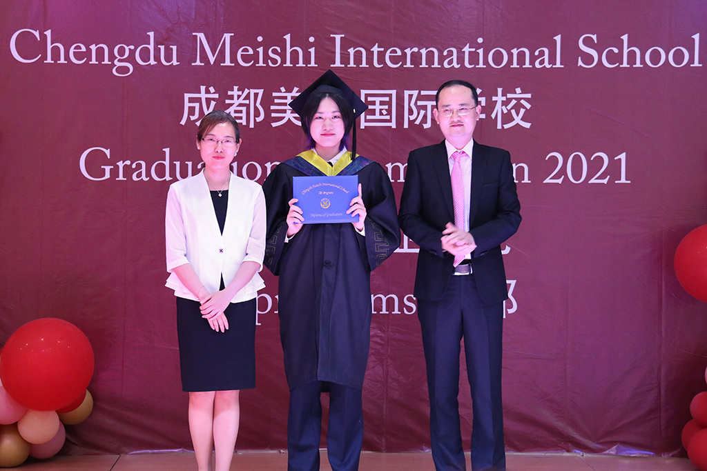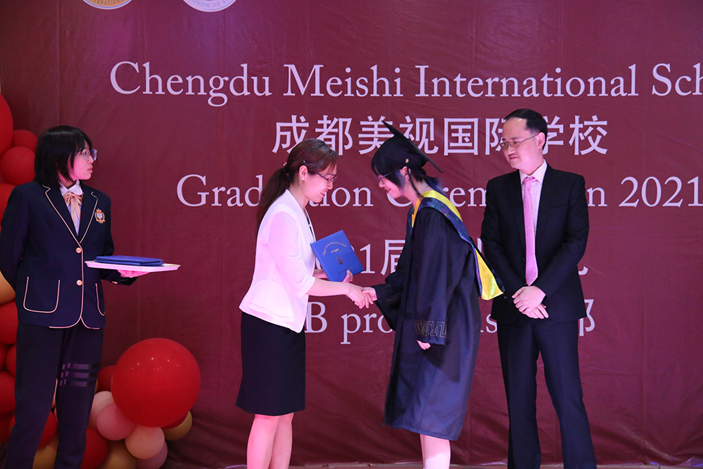 接下來IB部劉校長與DP協(xié)調(diào)員Mr.Lorry為畢業(yè)生頒發(fā)證書。劉校長代表IB部為獲得斯坦福offer的畢業(yè)生Sera頒發(fā)紀(jì)念品。