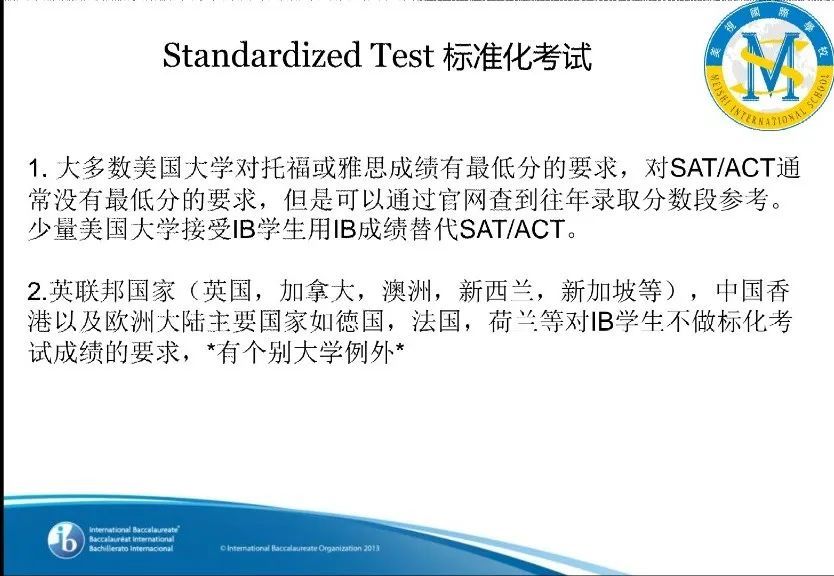 標準化考試的報名和備考要重視,十一、十二年級也就是DP是IB的最后階段,也是最重要的階段,不但要把各學科的學習抓好,同時也不能耽誤大學升學的準備工作。