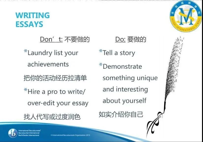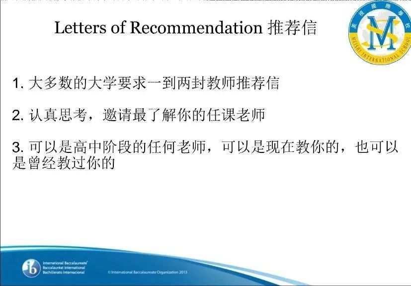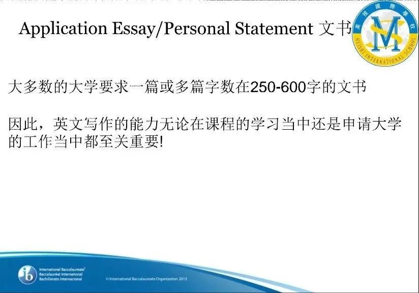 無論是 I B課程本身對學生論文的要求,還是在升學當中,在國內稱之為文書,論文這塊也是非常重要的。在推薦信這方面,美視的老師都有豐富的經驗,多年來美視的學生出國的成績是非常不錯的,老師為學生提供推薦信的流程等各方面都是非常成熟的。大學申請系統的介紹,不同的選校名單會把你帶到不同的大學申請系統,美視在這方面也是結合一對一的個性化升學指導課程當中的。
