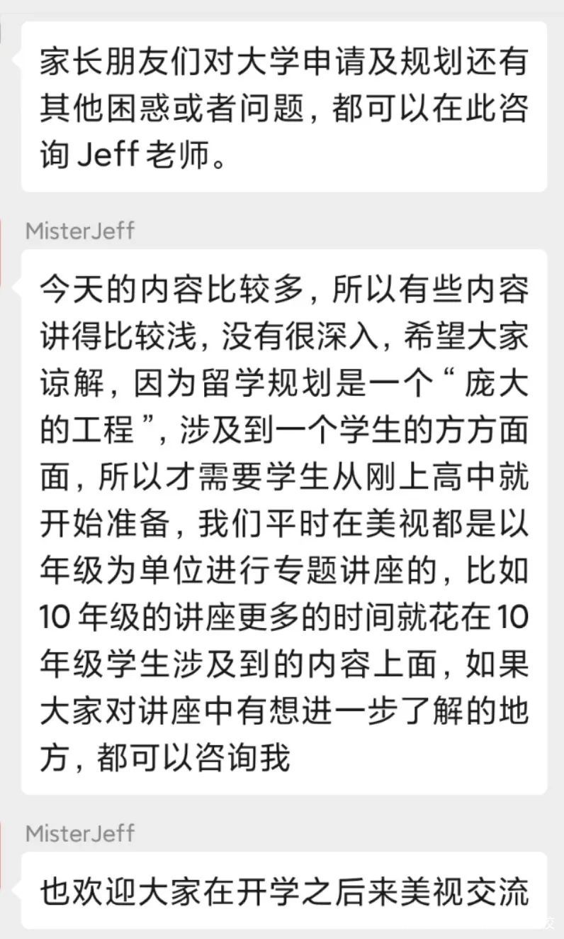積極參與大學講座活動:美視每年都會有一些包括歐美、亞太地區大學的招生官來訪問學校。給學生提供一個機會,與學生進行面對面的交流,充分的讓學生能夠跟一些招生官進行面對面、進行更深入的了解,因為畢竟網絡渠道不夠直觀、不夠細、不夠個性化。這些大學訪校活動,學生的反饋情況十分好,與招生官面對面的交流把學生以前的一些不好意思問的、或者在網上問了很多次得不到一個個對應的回答的問題都解決了。