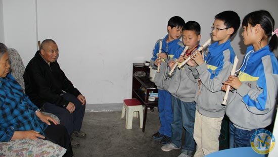 走進社區,服務老人,孩子們每次的體會都很深刻。當他們走進那些獨居老人的家,看見家中簡單無華的樸質擺設,當他們知道有些爺爺奶奶身體殘疾無人照料,當他們了解原來生活中還有如此的艱辛與勞苦時,他們只能用行動表達自己的關懷。每一次,可能只是讀讀報紙、講講故事、背背古詩、吹吹豎笛、跳跳舞,也可能只是動手擦擦桌子、抹抹家具、掃掃地……
