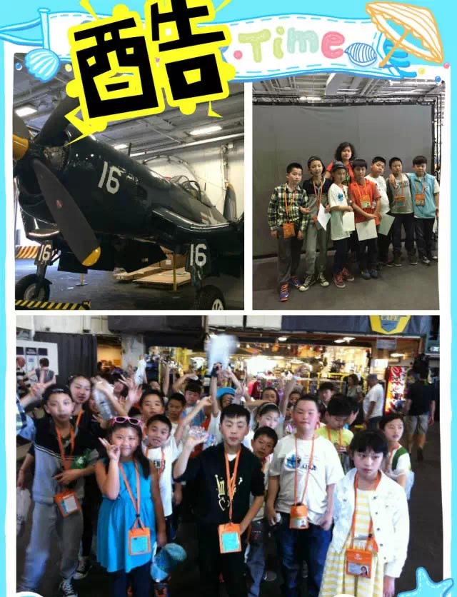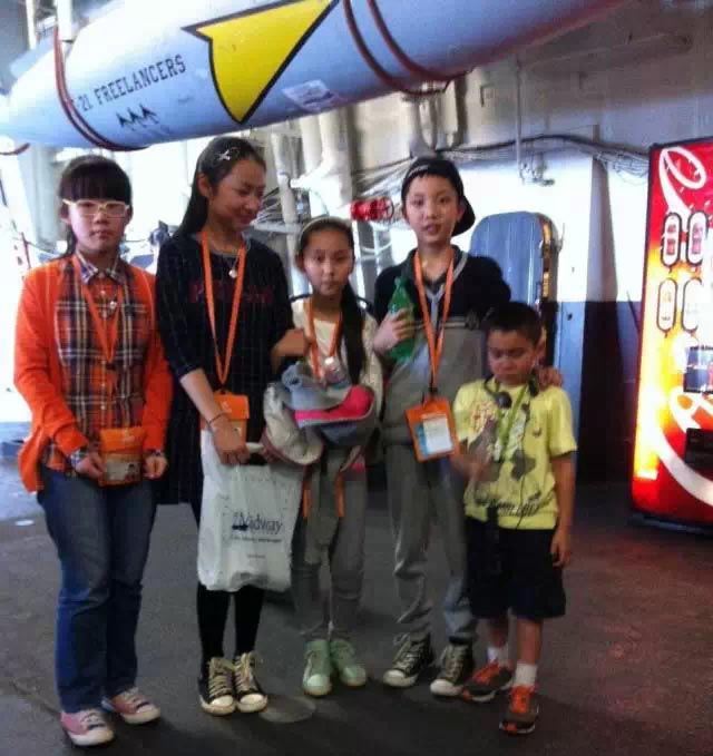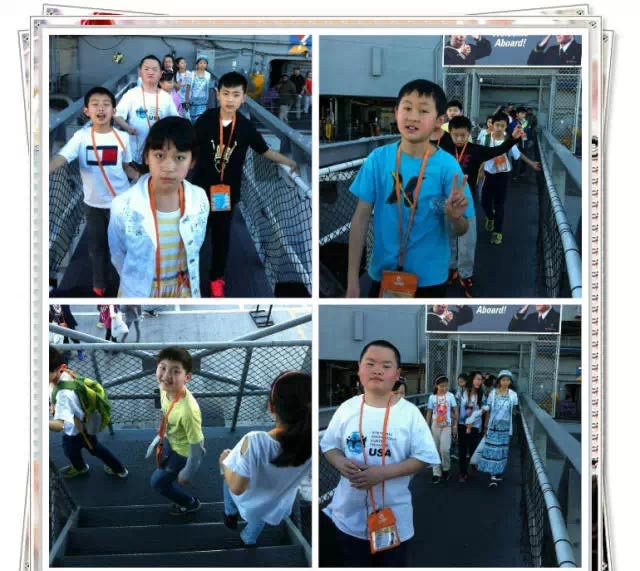 午餐過后,營員們參觀了“中途島號”航空母艦,途中還發生了一個小插曲:有個美國孩子被鎖住了,我們的小朋友發揚國際主義友愛精神,紛紛安慰他。美視的小朋友,贊一個!