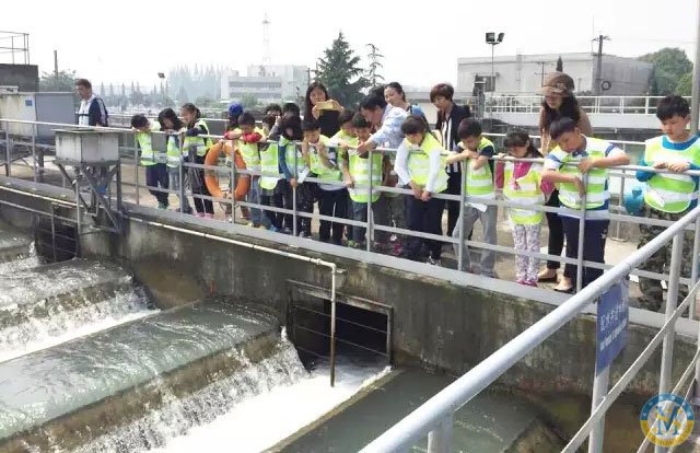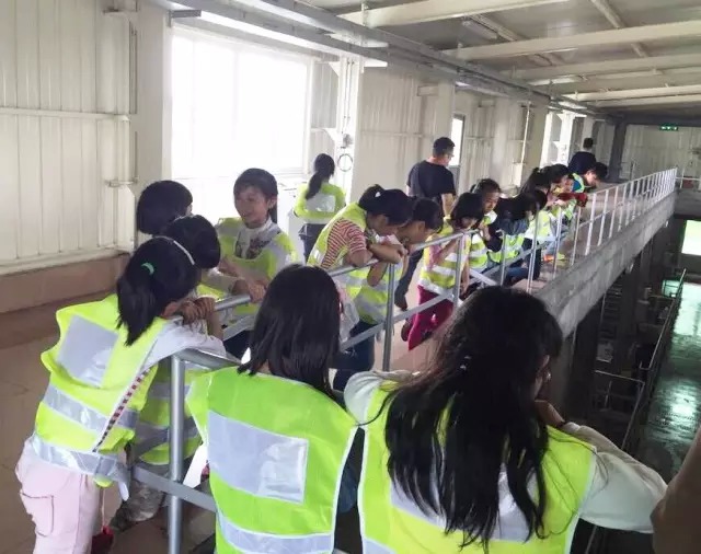 穿上白綠相間的條紋背心,猶如一大群熱帶魚歡快來襲,孩子們跟隨著講解人員,開始暢游水工廠,尋覓答案咯!