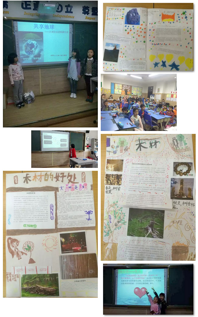 在“世界地球日”到來之際,孩子們根據前幾周的探究學習,進行了反思:為節約資源,愛護環境出一份力,盡一份心。