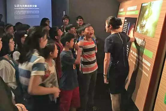 館內的講解員深入淺出地給孩子們介紹七大類自然災害:地震、地質、氣象、洪水、海洋、森林、農作物及生物。
