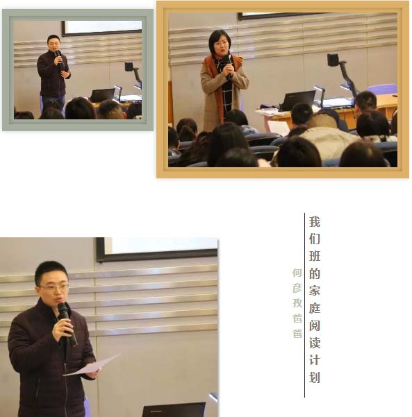 我們班從去年11月開始,在班級老師的倡導下,啟動了“書香家庭”這個活動。每個家庭制定了閱讀計劃,按計劃安排固定的閱讀時間,家庭成員間互相監督,互相鼓勵,一直堅持每周末有1-2小時的“親子閱讀”時光,每個家庭成員都積極參與到書香家庭的評比活動中來。