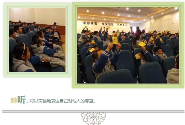 趁春色初至,PYP一年級(jí)全體師生齊聚學(xué)術(shù)廳。一·一班馮梓涵媽媽主導(dǎo)本次“習(xí)得禮儀,高雅表達(dá)”探究活動(dòng),不但為大家特邀禮儀培訓(xùn)師彭雪老師,還做了充分的物資準(zhǔn)備,以確保探究的生動(dòng)高效。