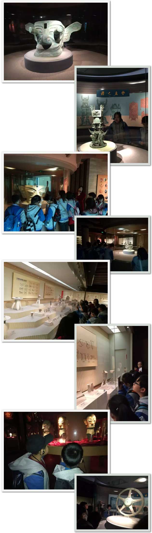 這次,我們近距離觀賞了三星堆出土的陶器、玉器、金器,陣勢雄渾、威赫森嚴的青銅雕像群及一批造型神秘詭譎的古蜀青銅神品重器等各類文物。讓我們全面系統地了解了古蜀歷史及三星堆古蜀國在各個領域取得的輝煌成就。
