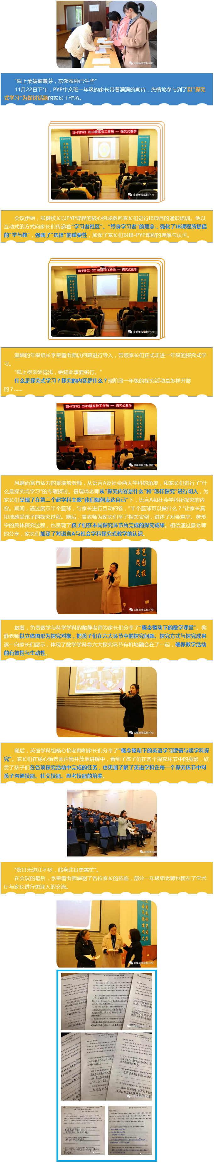 充滿肯定與信任的反饋表,表達了對學校、對年級組、對老師辛勤付出的認可,也表現出對孩子進一步走入探究式學習的深深期許。