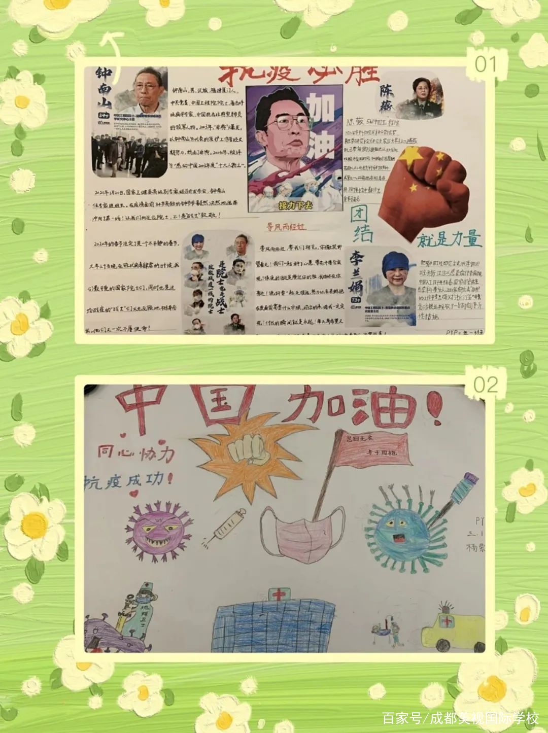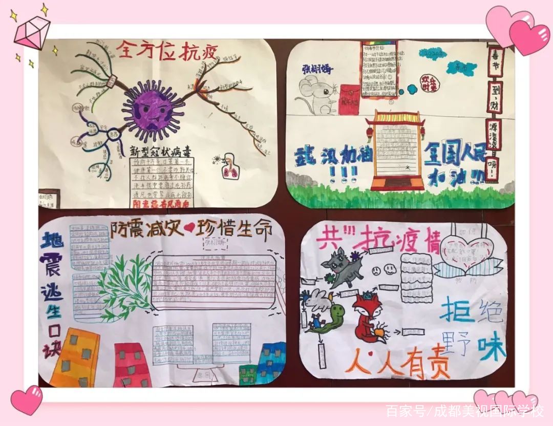 在家學習的日子,三年級的孩子們利用所學的數學知識,學會看統計圖,讀取數據信息,基于數據對比和時事資訊,分析中外疫情發展,持續關注媒體報道的疫情變化。根據社會學科每周的任務卡,了解我們身處的時空,探究在社會突發大事件面前,人們應對如何科學理性地面對。瞧瞧他們的小報展示吧!
