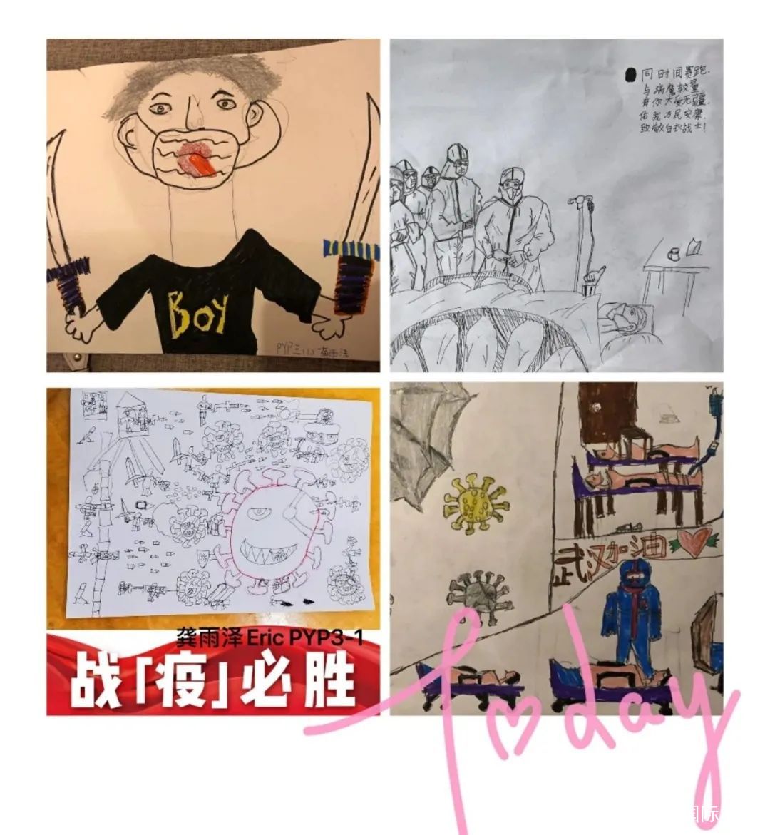 孩子們積極了解有關新冠病毒的相關科學知識,與家人共同踐行居家防護病毒的正確措施,個性設計宣傳海報,繪制“防護指南”漫畫,創編《致敬逆行者》歌曲和詩歌,錄制“武漢加油,中國加油”視頻,給奮戰一線的醫護工作人員寫慰問感謝信。將PYP探究與社會生活緊密結合,正確認識世界,勇于面對危險,積極迎接挑戰,PYP五年級孩子用赤子之心,盡綿薄之力,與國家同呼吸,與民族共命運!