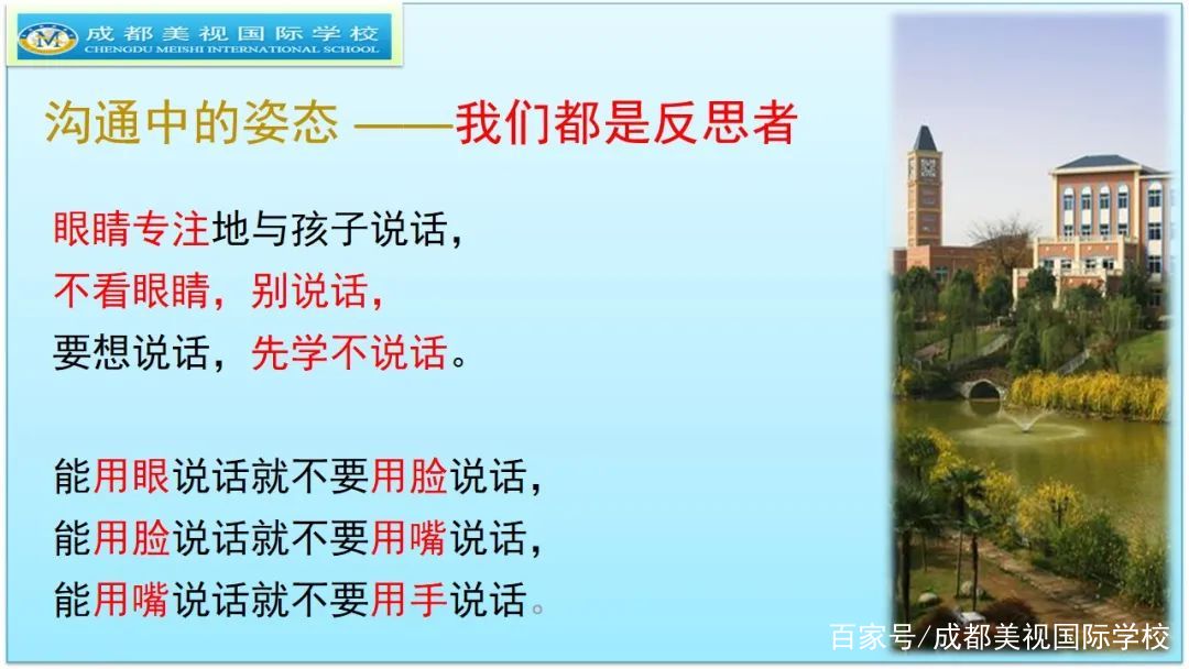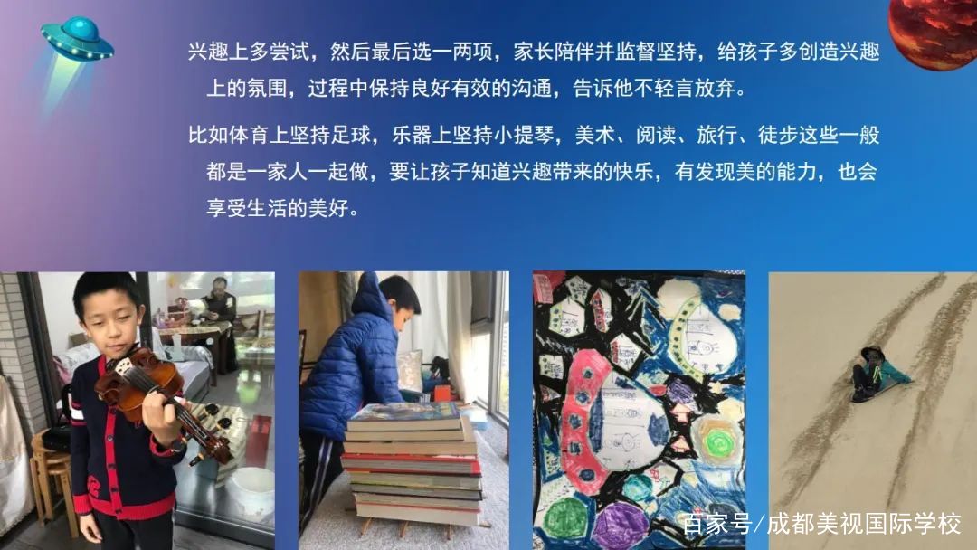 如果孩子有了決定,就應(yīng)該為自己的決定負(fù)責(zé)任。我們會(huì)將事情的來(lái)龍去脈、輕重緩急、各種后果都盡可能告訴他,協(xié)助他做決定。久而久之,孩子就具備了一個(gè)基本認(rèn)知:我在做的事情是我自己決定的,而不是別人。選擇美視師一學(xué)校、選擇IB項(xiàng)目,同樣是孩子的自主決定。