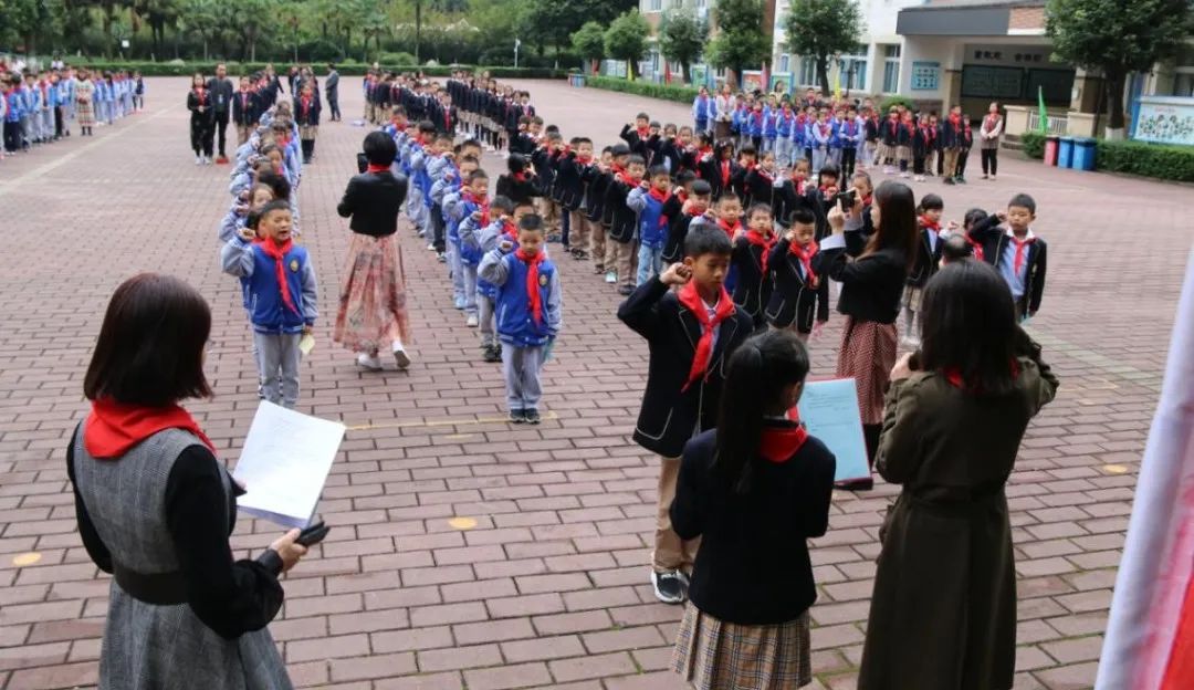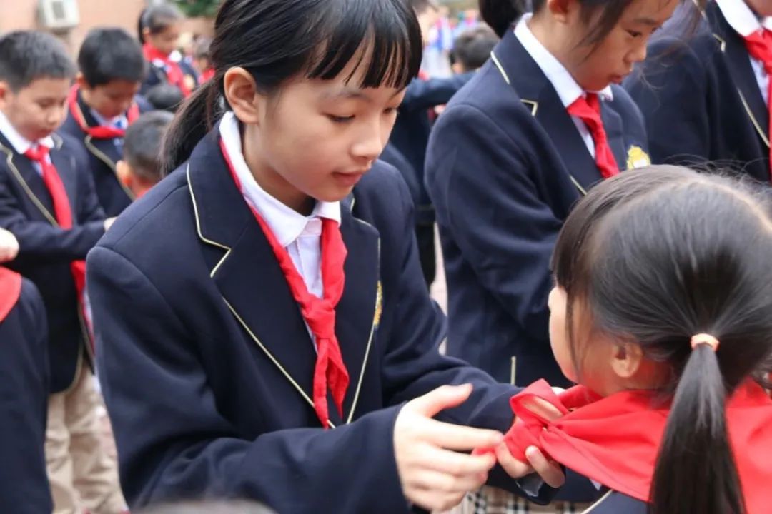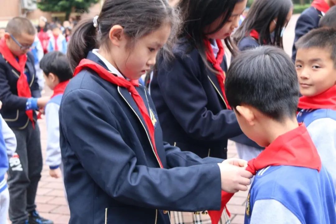 新時代,我們少先隊需要新的血液,傳承著黨的紅色基因的新隊員。在老隊員們的見證下,我們舉行了一年級新一批隊員的入隊儀式。五年級老隊員為他們帶上少先隊的象征——紅領(lǐng)巾,并為他們送上了親手制作的賀卡以資鼓勵。一年級的新隊員們也在隊旗下,鄭重宣誓,牢記黨的教導(dǎo),從小學習做人、從小學習立志、從小學習創(chuàng)造,立志向、修品行、練本領(lǐng),為實現(xiàn)中華民族偉大復(fù)興的中國夢時刻準備著。
