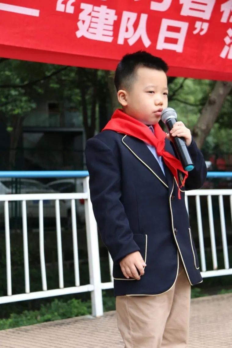 一年級新入隊隊員張景棠同學,作為新隊員代表,發(fā)表了稚嫩卻誠摯的講話,表達了對少先隊的認識,對紅領(lǐng)巾的認識;并且表示要好好學習、熱愛祖國、尊敬老師,團結(jié)同學,做一名合格的少先隊隊員。