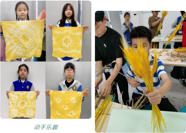 在這里,孩子們走進(jìn)樂農(nóng)學(xué)院,感受與生活息息相關(guān)的節(jié)氣物候;認(rèn)識麥穗及麥芒,親手制作金燦燦的麥子花束;體驗(yàn)動(dòng)手的樂趣,學(xué)習(xí)植物扎染這一傳統(tǒng)技藝,還有那齊心協(xié)力的履帶車比拼,激烈緊張的旱地冰球競技,都讓生機(jī)盎然的田園里溢滿孩子們的歡聲笑語。