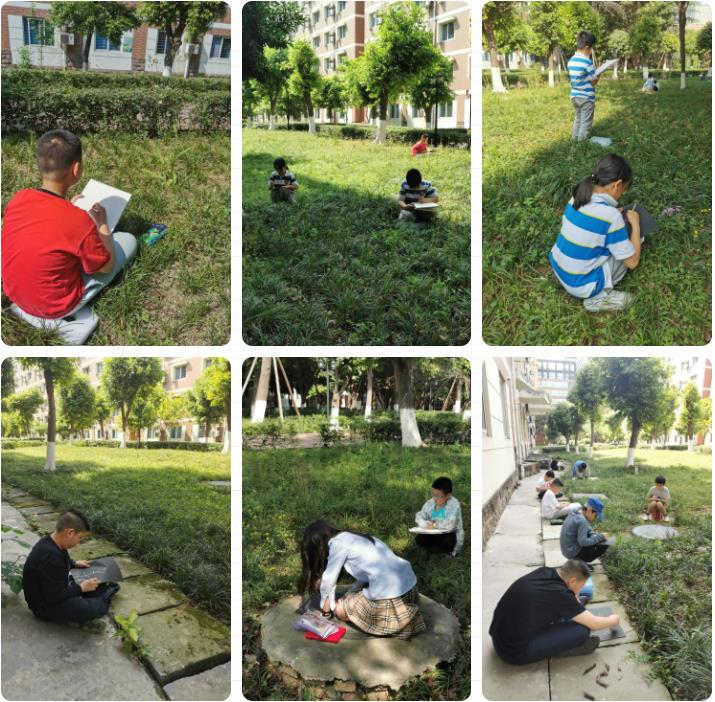 立夏時節, 風光怡人的美視校園里,一樹一花皆成趣,一汪碧水總關情!孩子們流連其間,滿心甚是歡喜,用支支畫筆描繪繽紛的夏日美好:略施粉黛的蓮花在池中欣賞自己美妙的身姿;林蔭道邊,一抹抹郁郁蔥蔥的樹林陪伴孩子們充實的學習生活;朵朵綻放笑顏的玫瑰和月季交相輝映;綠得直逼你雙眼的草地,以及掩映其間不知名的各色小花也分外動人!