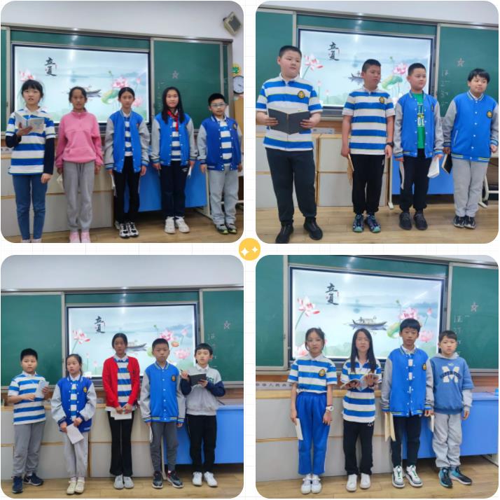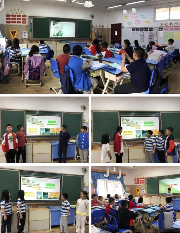 “做有中國靈魂的國際人,做有國際視野的中國人”是對全面發展的PYP學習者的深刻詮釋。英語課堂上,孩子們從“節氣”的英語翻譯“solar terms”切入,探究了二十四節氣的由來以及與太陽之間的聯系,接著,宋代詩人楊萬里的詩句“小荷才露尖尖角,早有蜻蜓立上頭”的英文版將孩子們帶入了立夏這個美妙的時節,孩子們踴躍分享了自己所知的立夏時節的傳統文化,隨后,孩子們通過觀看蘊含中國文化的英文短片,欣賞到了更多的與立夏相關的中國古詩英文版,孩子們帶著發現美的眼睛,在英語單詞中尋找立夏的意像,體會中英文如何表達情感,最后,孩子們分為小組,互幫互助朗讀英文詩句,并上臺展示。