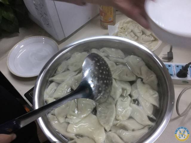 將近三百個餃子在沸水中翻騰歡鬧著。孩子們個個兒圍著熱氣騰騰的鍋,守著自己包的餃子,因為是自己勞動的成果,千奇百怪的形狀此刻看上去也煞是可愛。添一次水、兩次、三次,白鼓鼓的餃子們像圍在鍋旁的孩子們一般,分分秒秒地雀躍著、膨脹著、成熟著......