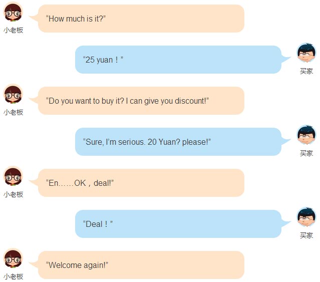 看!我們絲毫不怯場,努力地用英文討價還價!旁邊的父母還要增加難度,讓我們把中文翻譯成英文!